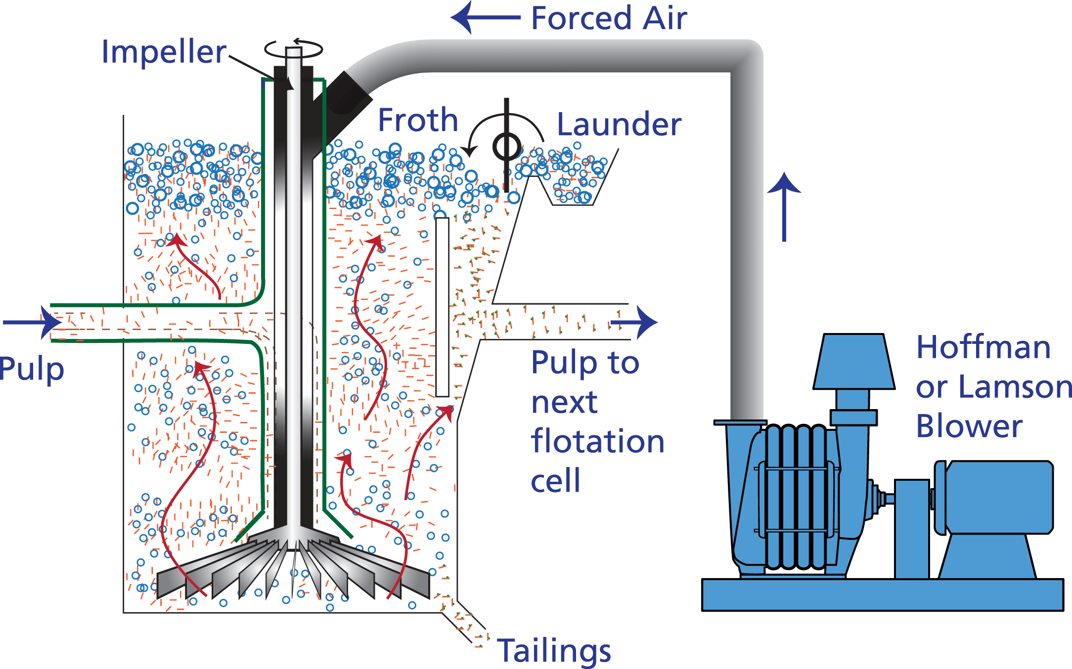 2. Cleaning - The rougher concentrate goes through further stages of flotation to reject more of the undesirable minerals that ended up in the froth. The product of cleaning is known as the leaner concentrate or the final concentrate. The objective is to produce the highest concentrate grade possible.